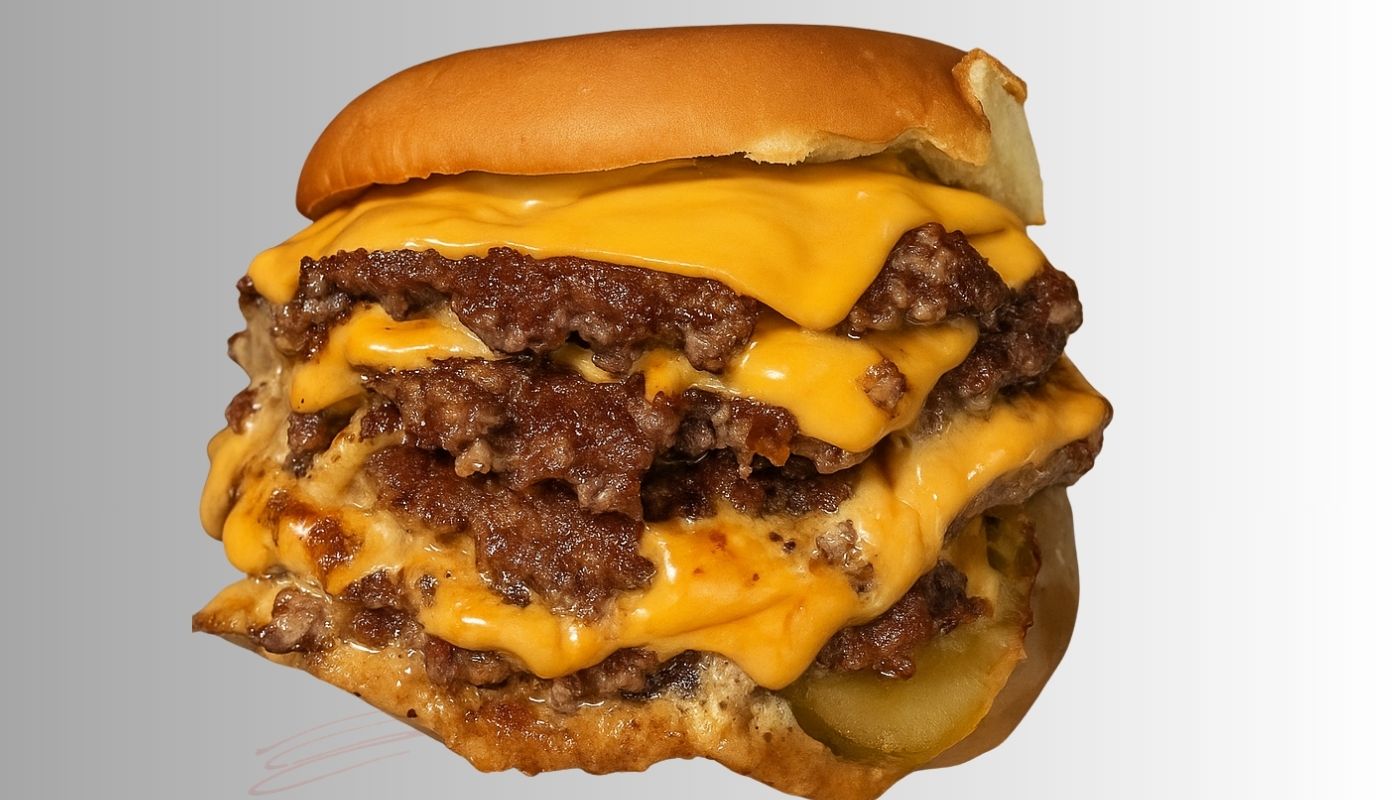 A towering 4-patty smashburger stacked with pickles and our signature Refuel house sauce. Over-the-top, bold, and built for burger legends