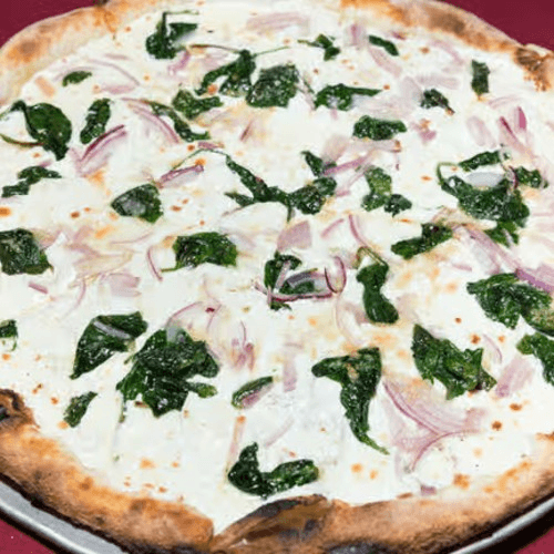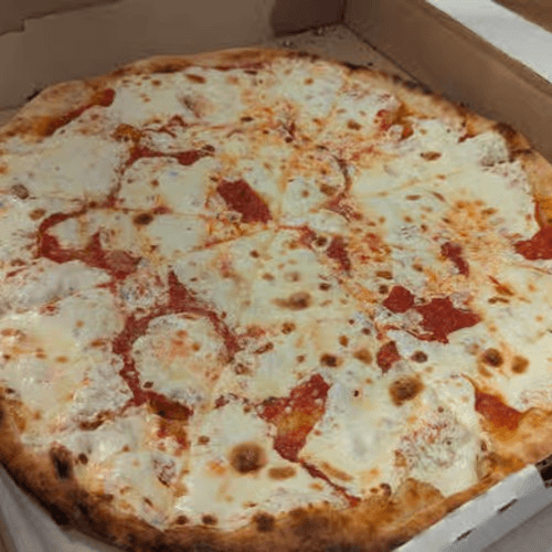 All of our pizzas are baked in wood-fired brick ovens with crushed plum tomato & fresh mozzarella