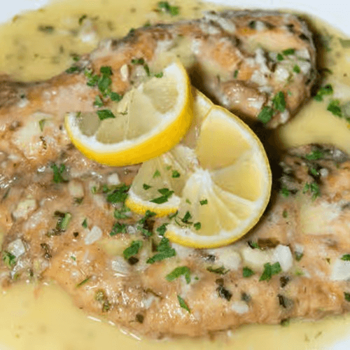 Egg batter dipped chicken sautéed in lemon, butter, white wine sauce